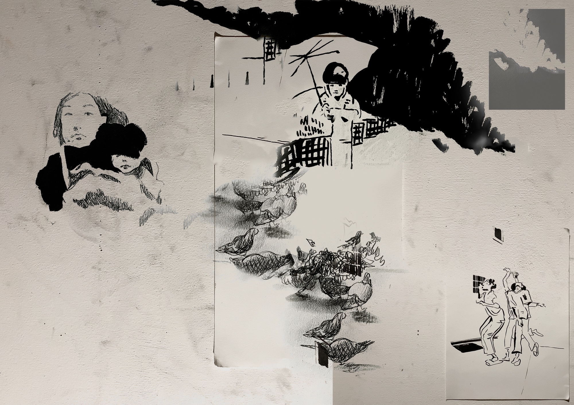 Graphite and Ink on Paper, Digitally Manipulated Image, Digital Collage