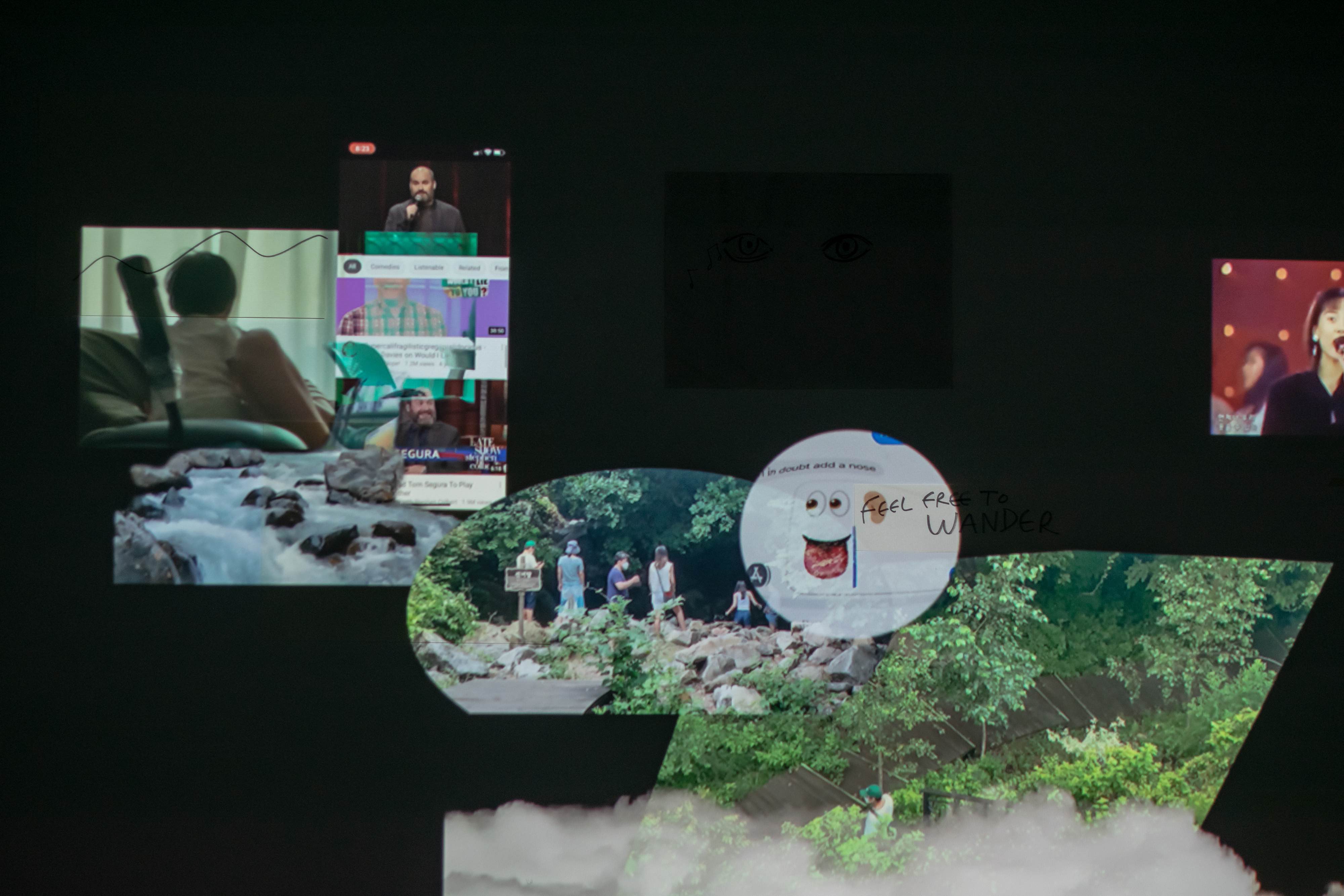 compoSite is a hot-glued, hodge-podged, annotated visual mix of personal and externally sourced footage exploring one’s subjection to the visual. It simultaneously commands and challenges one’s attention, reproduces itself in different points, and collapses legibility. Drawings and text are included in the space as a reference to the personal, gesturing towards someone who is tying all of these disparate sources together.